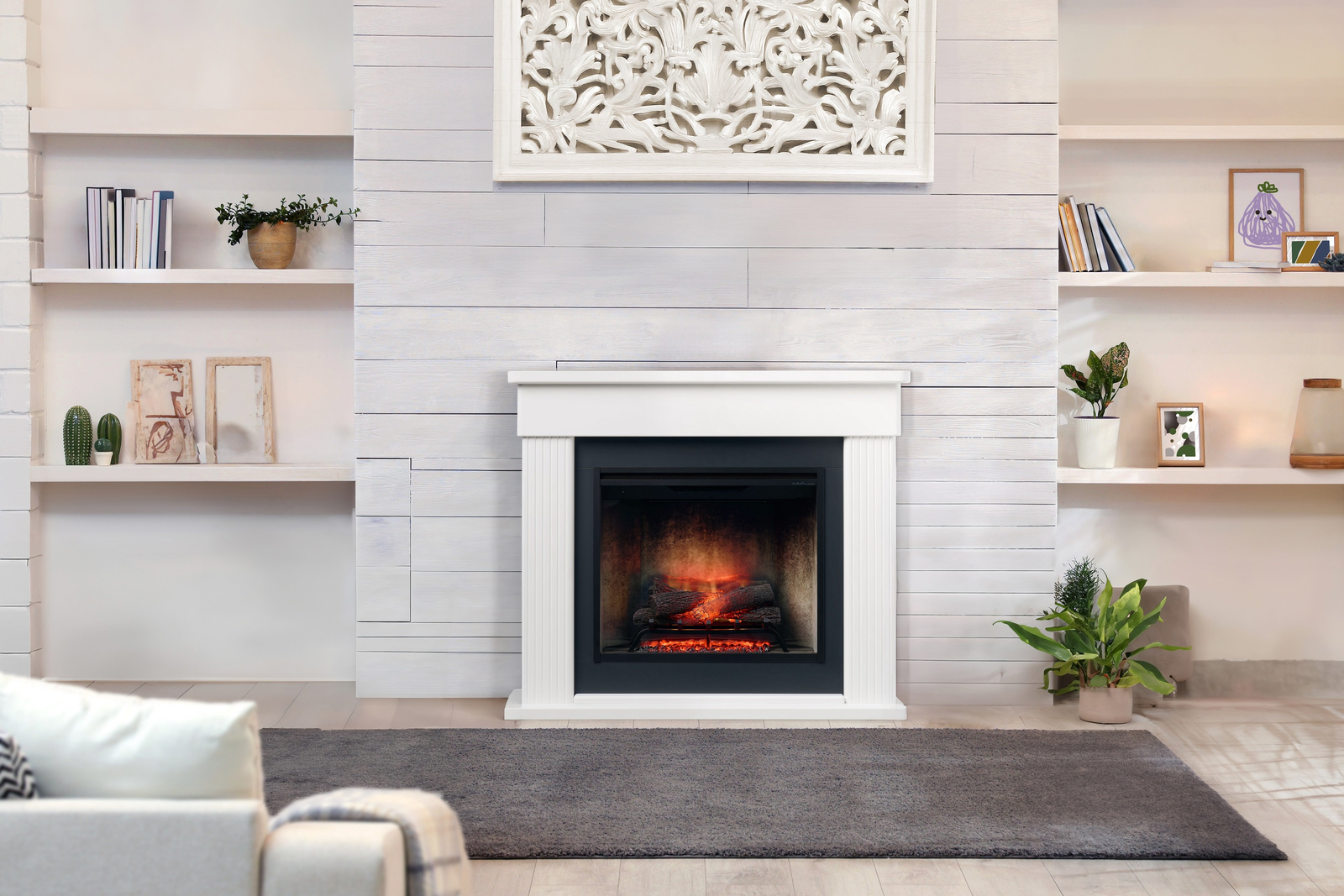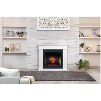 The Portland mantel is in traditional styling and will bring style and elegance to any room. This traditional fireplace utilises Revillusion Flame technology - A clear view through the lifelike flames, to the full cocnrete interior, captures the charm of a wood-burning fireplace.