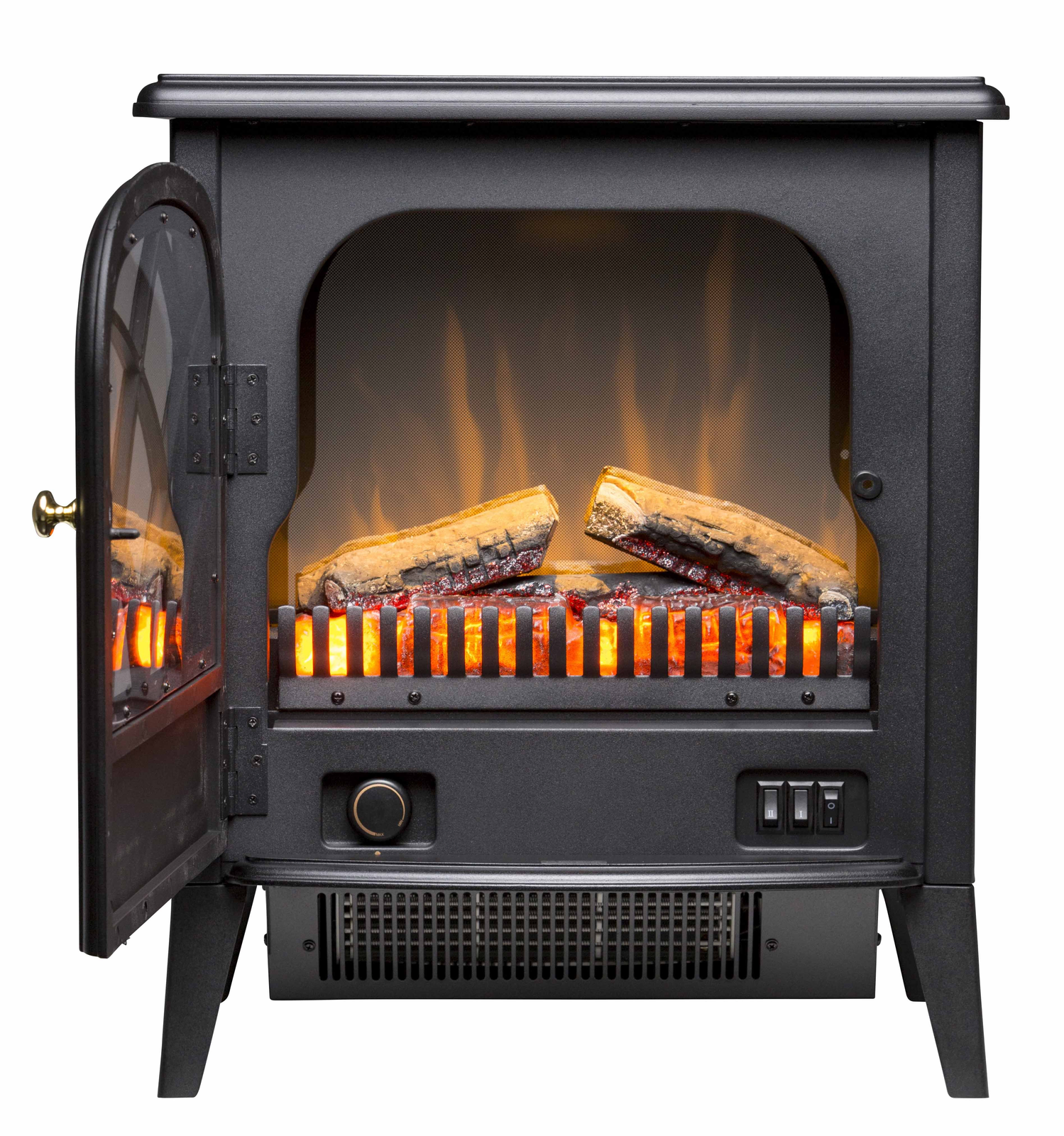 This compact electric stove gives you all of the cosy ambience of a wood stove with none of the mess. The matte black finish, working door and traditional stove style finish make it a perfect addition to any space. The Flame effect can be used independently of the heat source.