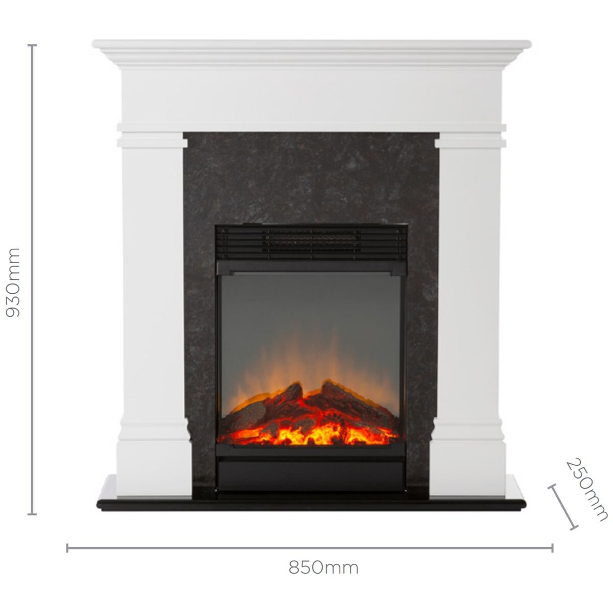 The Dimplex 1.5kW Taylor Mini Suite is a fusion of timeless design and modern convenience. This electric fire suite exudes elegance with its clean lines and traditional white finish, adorned with a granite effect front for a touch of sophistication.