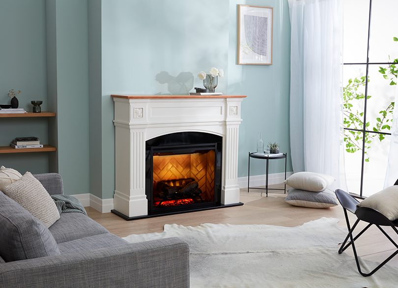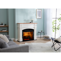 The Windelsham suite in natural white and oak veneer finish with bring elegant style to any room. This traditional fireplace utilises Revillusion Flame technology and Realogs Plus a full grate of life-size hardwood-cast logs, with the heat source at the top, the realistic simulated electric flames are a safe option for the family home, during the warmer months use without the heat source to enjoy the same ambiance all year round. Quick set up in minutes and no expensive installation or venting required, allows easy movement between rooms. The Revillusion Flame technology creates larger and brighter flames to emulate a real fire, choose from a flame base of red or blue and customise the firebox mood lighting with a choice of hues.