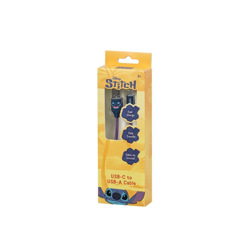 Disney Stitch USB-C to USB-A Cable 1.2m is a high-quality charging and data cable featuring fast charge and reliable data transfer capabilities. Designed with a fun Stitch theme, it’s perfect for keeping your devices powered while adding a touch of Disney magic to your desk or travel kit.