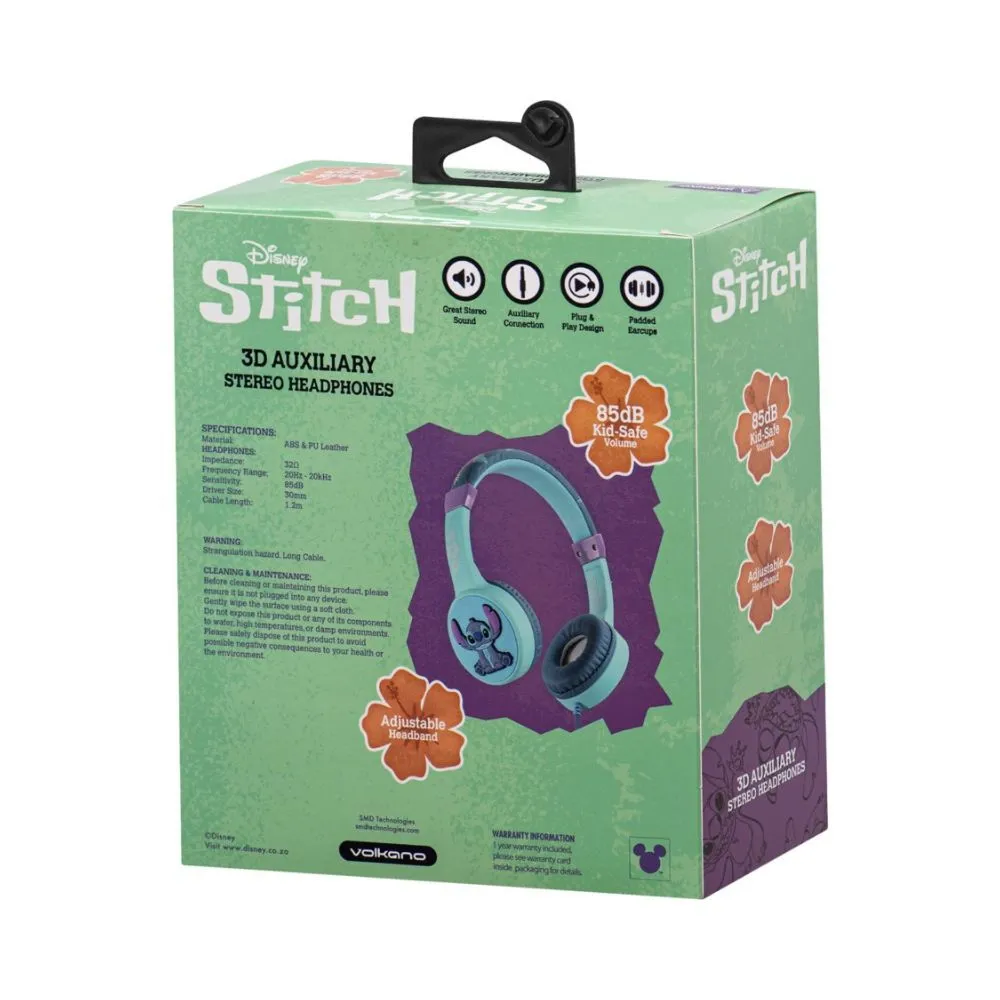 Disney Stitch 3D Auxiliary Stereo Headphones deliver fun style with safe, high-quality sound for kids. Featuring a playful Stitch 3D design and comfortable padded earcups, these headphones are perfect for music, videos, learning apps and travel.