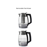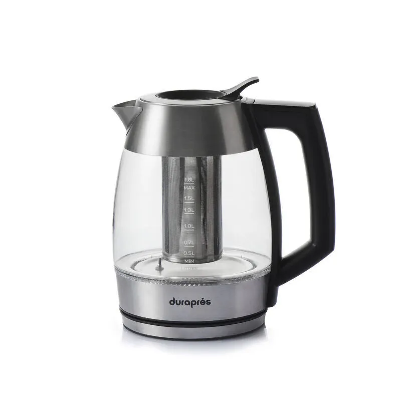 • Construction: Glass body, stainless steel base, soft-touch handle
