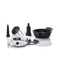 • Comes with multiple attachments: twin titanium-coated stainless-steel blades, dough blade, double beaters, slicer disc, grater disc, and juicer