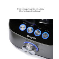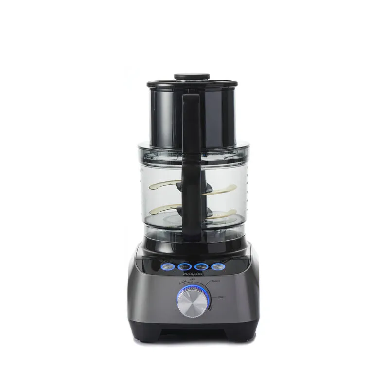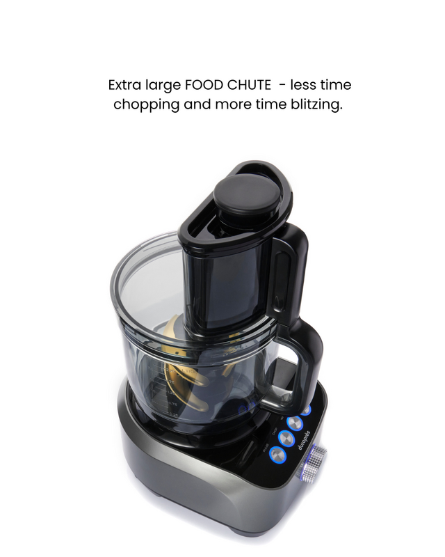 • All‑in‑one food processor: chops, slices, shreds, blends, juices, whisks and kneads dough