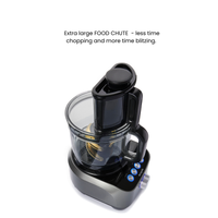 • Extra-large feed chute for fast, efficient prep (less pre-cutting required)