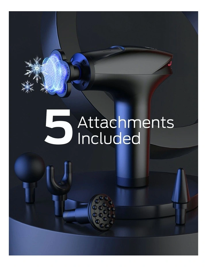 • 5 x Interchangeable Massage Heads (Conical head, Ball Head, U-shaped head, Wolf-tooth Head, cold compress head)