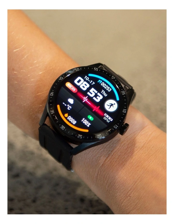 • Display: featuring a 47mm round face display with fully customisable face dials via the connected app