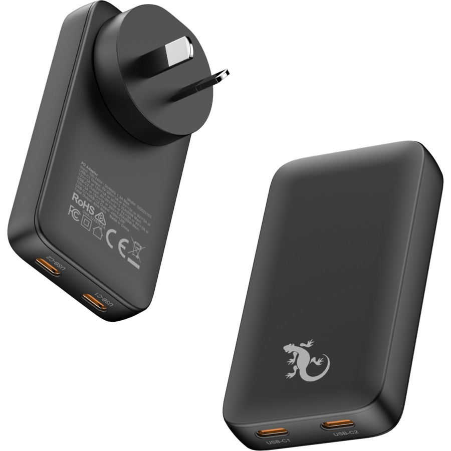 Ultimate power on the go. Fast-charge laptops and phones with 65W GaN tech in a slim shell. Dual USB-C charging ports.