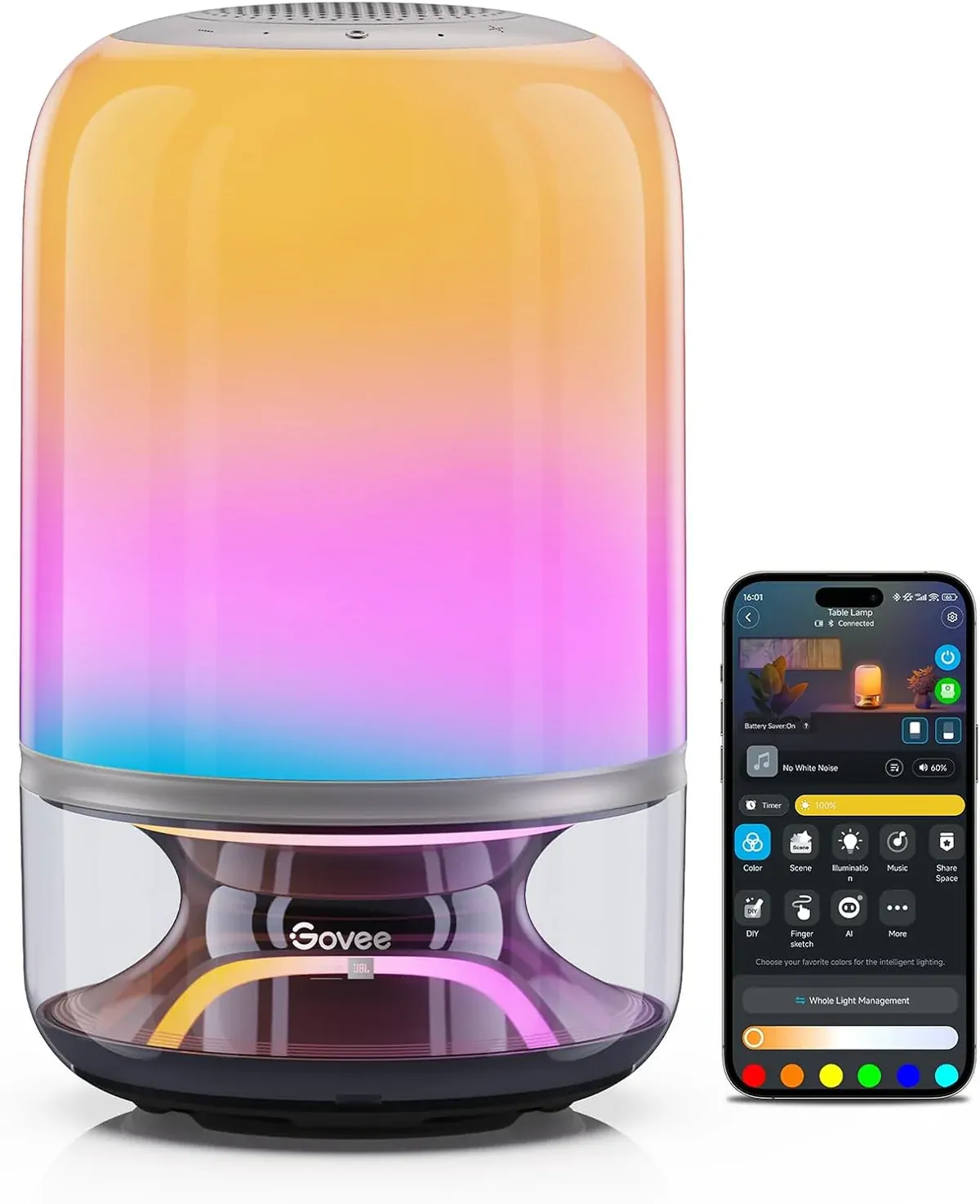 Bring your space to life with immersive sound and dynamic lighting. The Govee Smart Music Table Lamp combines precision RGBIC lighting with powerful JBL tuned audio, syncing light to music in real time for a next-level audiovisual experience.