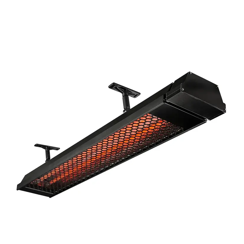 Built for high demand environments, the Heatstrip Max DC 4000W Commercial electric heater is ideal for high ceiling spaces, open balconies and busy outdoor venues. Its dual glass element system provides intense radiant heat with minimal light output, and the durable black housing with hexagonal grille is designed for permanent installation in indoor or outdoor commercial settings.