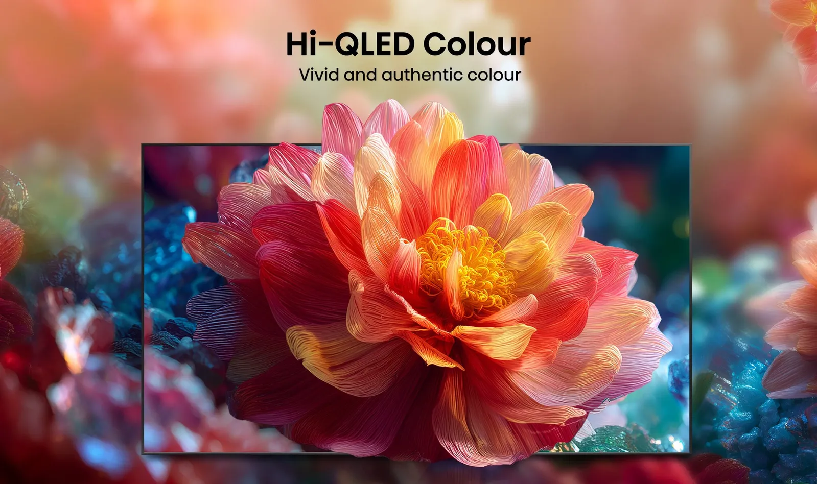 With vibrant Hi-QLED Colour, immersive Dolby Vision and Dolby Atmos, intelligent AI 4K Upscaling, and AI Smooth Motion, it delivers richer colour, clearer detail and smoother action for everyday viewing.