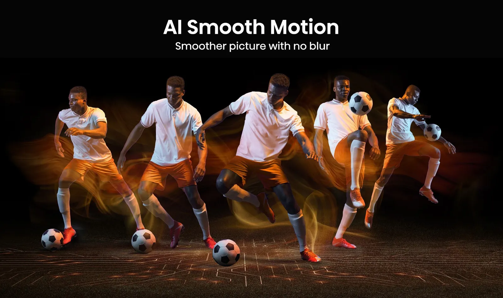 AI Smooth Motion keeps fast action looking fluid and sharp, reducing blur, so sport, action films and games stay smooth and easy to watch.
