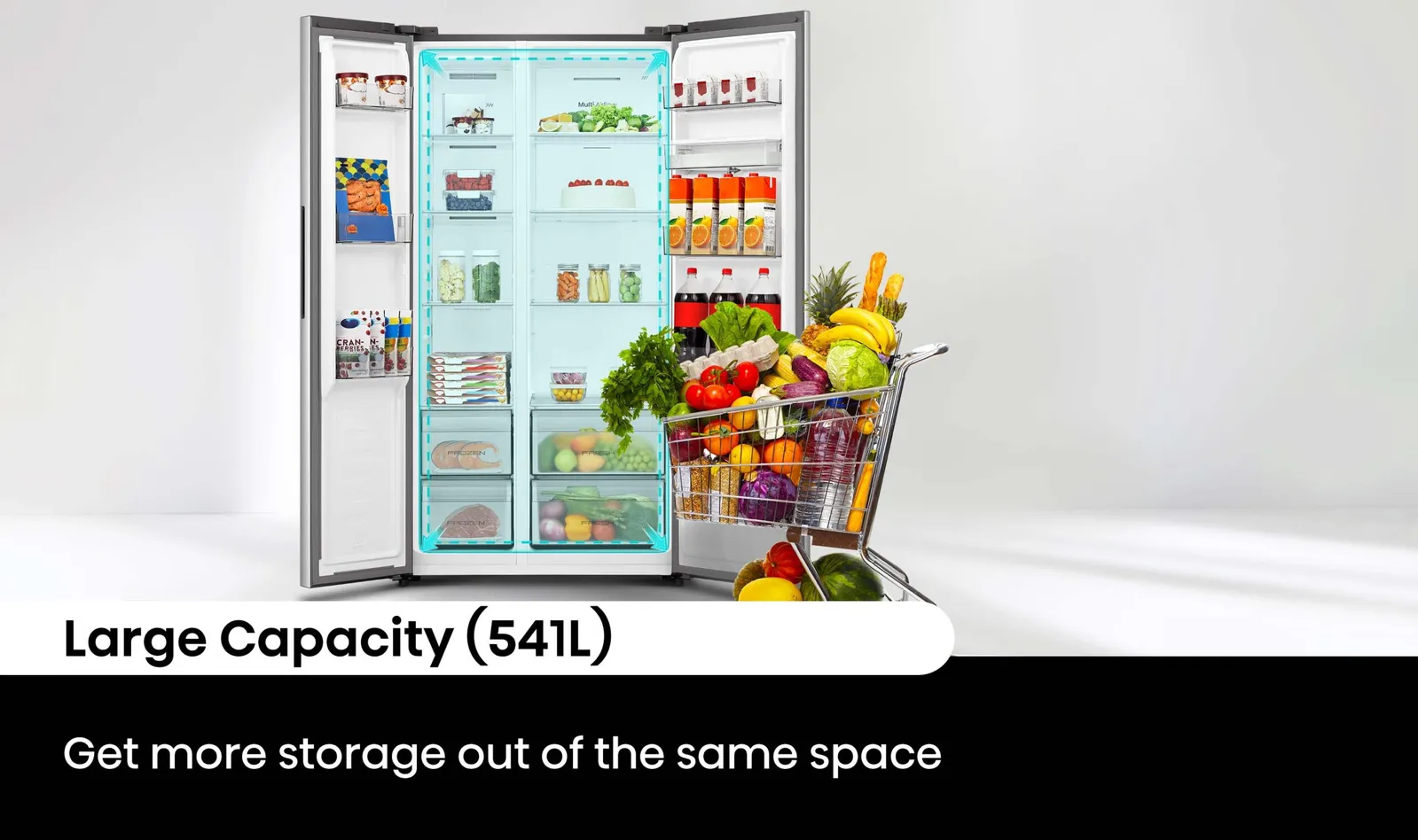 Hisense’s large capacity refrigerators ensure you can store any shape, size or type of food, meeting all your weekly shopping needs. Comfortably fit up 541L worth of fresh and frozen groceries.