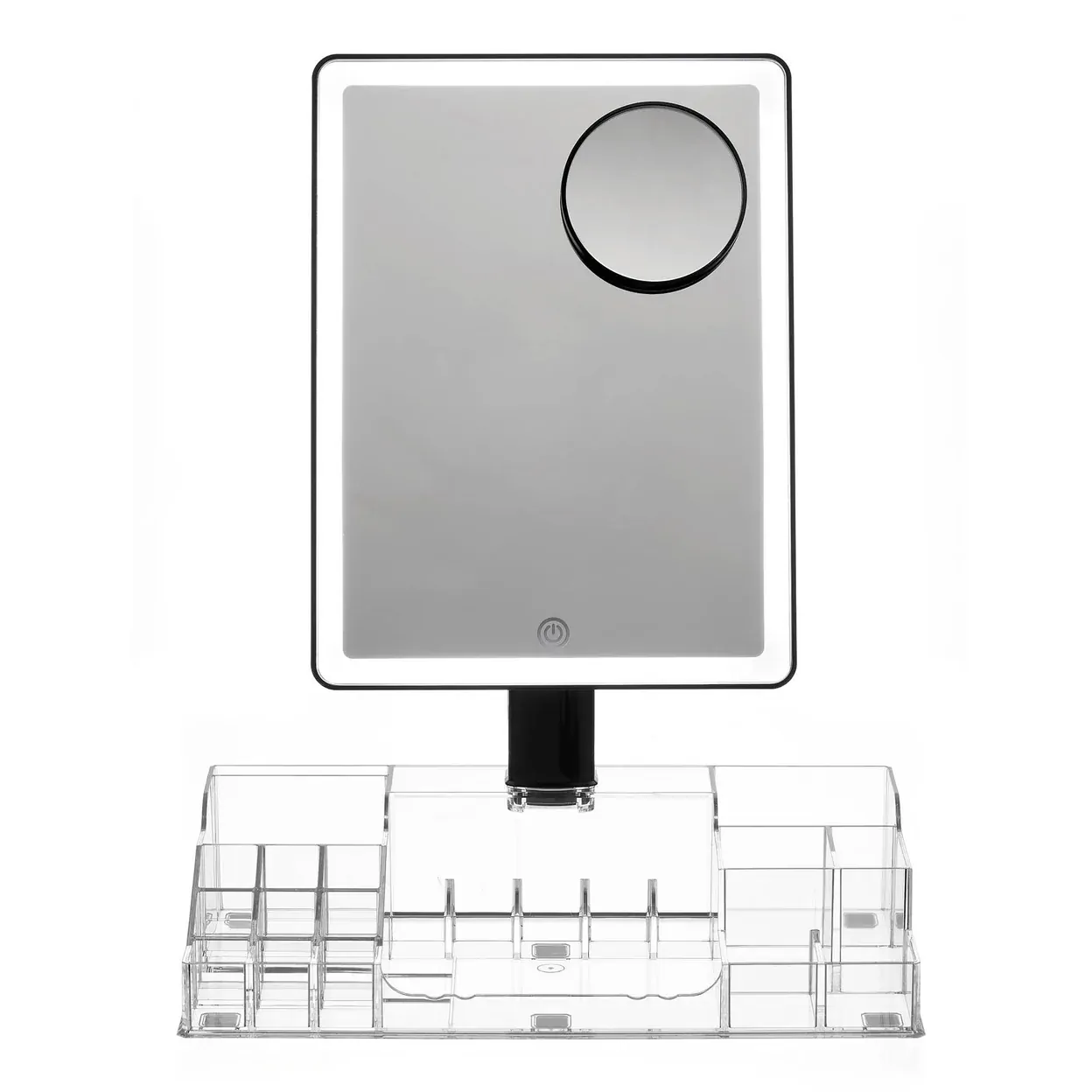 This Beauty Mirror with storage is both elegant and practical, it is set to provide a choice of a natural reflection or magnified for precision and detail and complete with 360 degree rotation including the ability to tilt forwards and backwards.