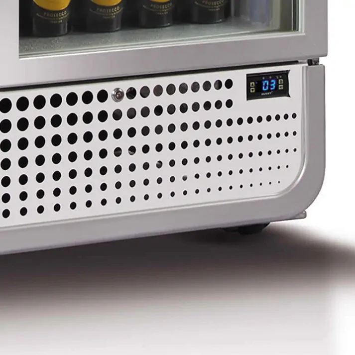 Featuring a whopping 975 litre gross total capacity, the Husky Double Door Vertical Glass Door Commercial Refrigerator in white finish is the ideal solution for any commercial or retail setting. This PRO range upright display refrigerator has its entire R290 refrigeration mechanism is mounted on a sled which is accessible from the front, making it easy to swap components and make repairs.