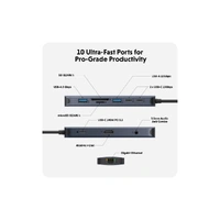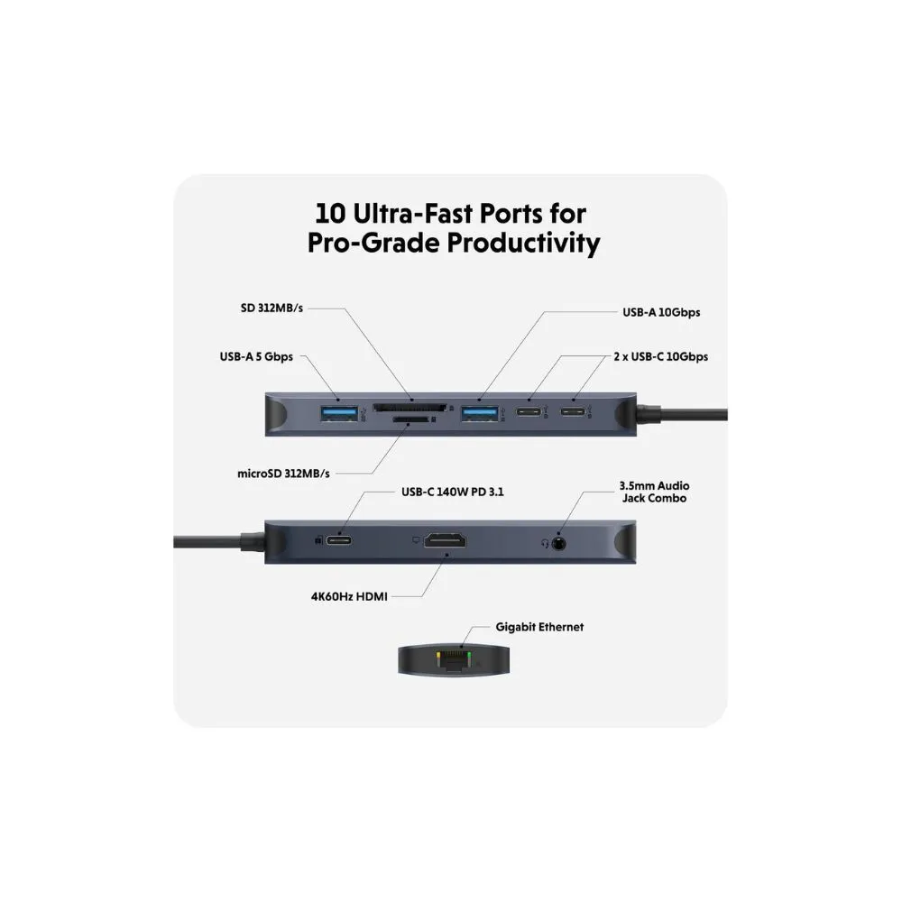 Introducing the HyperDrive Next 10-Port USB-C Hub, designed for creators, editors, photographers, and professionals on the go. This versatile hub connects effortlessly to your computer via USB-C, enhancing productivity and streamlining your workflow.