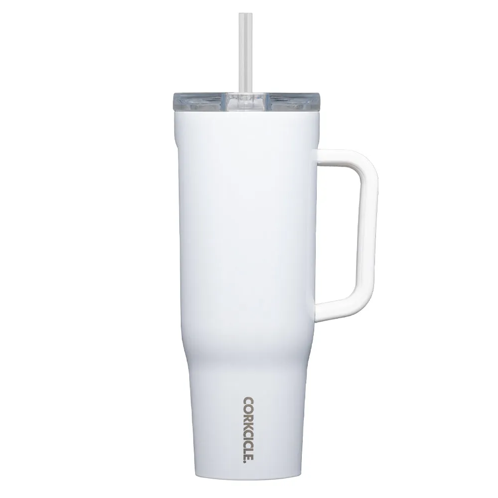 Corkcicle Cruiser - 1.2ltr Gloss White. Hit the road, trail, or wherever the day takes you—hydrated and in style. The Cruiser is our biggest straw cup yet, holding 1.2L (40oz) of your favorite beverage and keeping it cold for up to 20 hours or hot for up to 9. Whether it’s your daily commute or a weekend escape, Cruiser is designed for maximum comfort and minimal fuss. It features a spill-proof, dual-function lid for sipping or using the straw, a soft-grip handle for easy carrying, and a non-slip silicone bottom that stays steady no matter how bumpy the ride.
