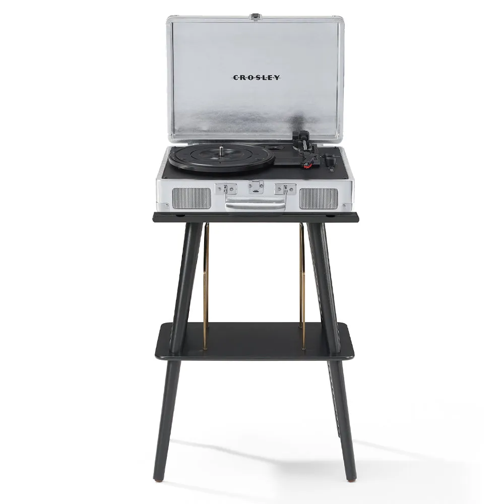 Some say you can’t improve on a classic, but we are here to prove them wrong with the Crosley Cruiser Bluetooth Portable Turntable - Silver + Crosley Turntable Stand Bundle. Features Bluetooth output functionality, so you can listen to your favourite records on the speaker system of your choice! The upgraded Cruiser design retains its charming portable suitcase shell in a rainbow of colours, three speeds and pitch control for all your listening needs, a Bluetooth receiver and built-in speakers so you can listen on the go.