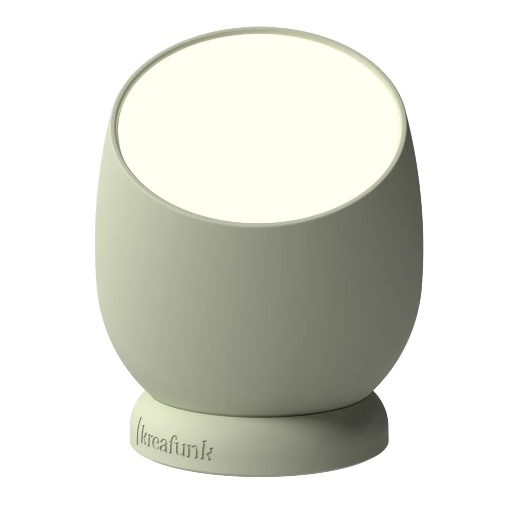 Kreafunk Beam Lamp, Portable And Rechargeable - Dusty Olive - Beam A Touch of Modern Elegance.Experience lighting reimagined with Beam a sleek, modern lamp designed for effortless usability and style.With its intuitive touch-sensitive control, turning the light on and off or adjusting brightness is as simple as a tap. Beam adapts to your environment and mood with precision and ease.Thanks to its wireless design, Beam offers complete flexibility place it anywhere, no cords attached. The removable, rotating base allows you to direct light exactly where you need it, making it as versatile as it is beautiful.Crafted to complement any room, Beam adds warmth and ambiance wherever it's placed.