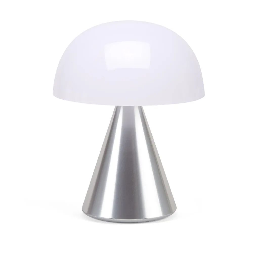 Lexon Mina L Large Portable Led Lamp - Alu Polish - The Mina L brings an exciting size, flourishing light, and stunning design all to one device. Make a statement wherever you use it, indoors or out. Mina L is rechargeable using any Qi-enabled wireless charging station. You can also use a USB-C charging cable to recharge the LED. An impressive 9 LED color range that you can bring to your bedside, workspace, or patio. The color change and dimming function are all controlled by a press down feature on the top of the light. The Mina L has up to 24h of battery life from a single charge, making it the perfect companion all day and night. Designed with an IPX4 water-resistant casing, means that it’s okay if your Mina L is left outside in a little rain.