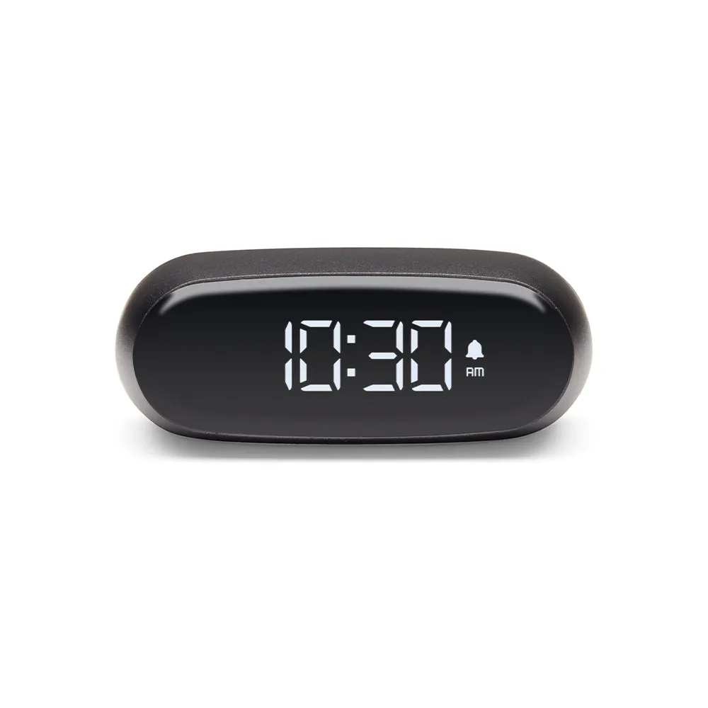 Lexon Minut Mini Alarm Clock - Gunmetal - Minut is a stylish and tiny alarm clock that fits in the palm of your hand. Its ultra compact size makes it easy to fit right on a nightstand and pack for travel. Featuring easy-to-use touch controls to light up the screen and trigger the snooze function, Minut gives you some extra shut-eye when needed. Equipped with pure VA LCD display, Minut allows you to check the time clearly at any position in the room. Crafted in a sleek aluminum finish, this cute little alarm clock is the perfect accessory to upgrade your bedroom decor. Offering up to 6 months of battery life, Minut is rechargeable via USB-c using the supplied cable.