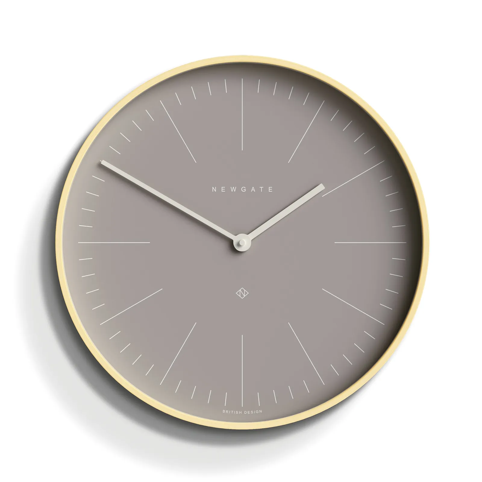 Newgate Mr Clarke Clock Pale Wood Clay Grey Dial A modern Scandinavian-inspired wall clock with a pale plywood case and a contemporary Clay Grey face with a minimalist marker dial.