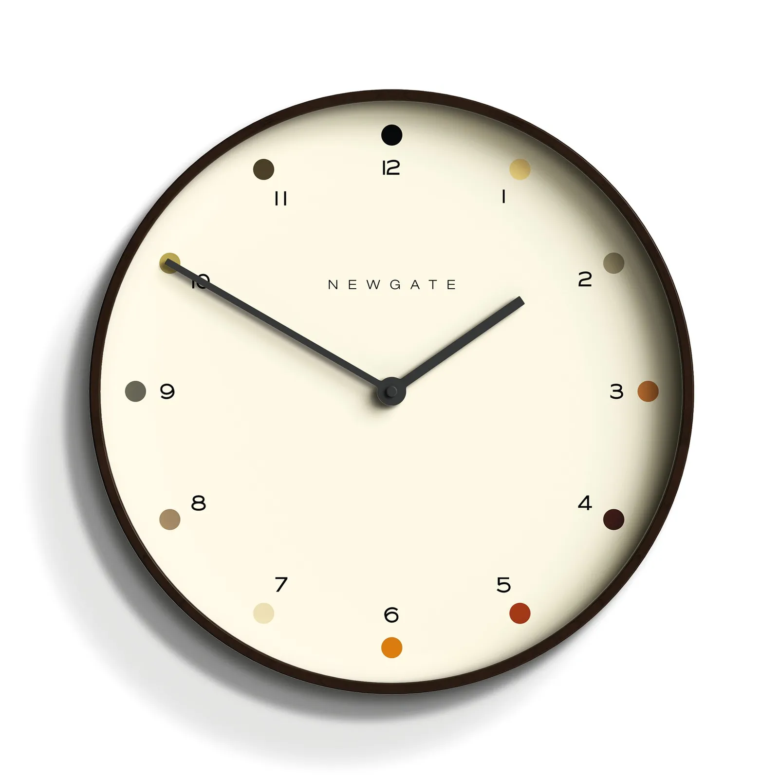 Newgate Mr Clarke Clock Dark Wood Dot Dial 40 A large dark plywood wall clock with a modern shaded dot dial.