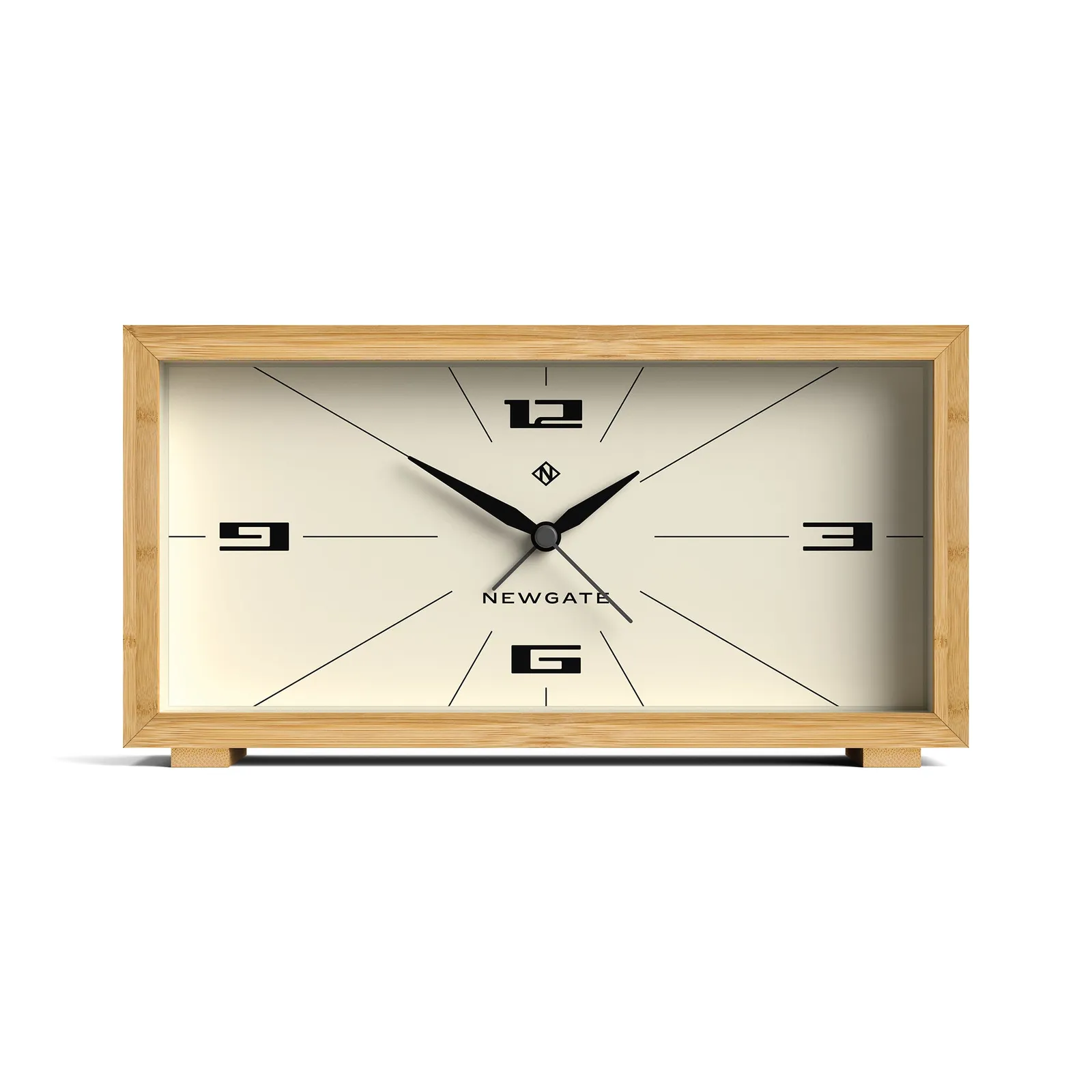 Newgate Lemur Alarm Clock A mid-century modern alarm clock with an emphasis on the modern. This space-age design blends a contemporary cream face and bamboo case with a retro-inspired dial and simplified numerals.