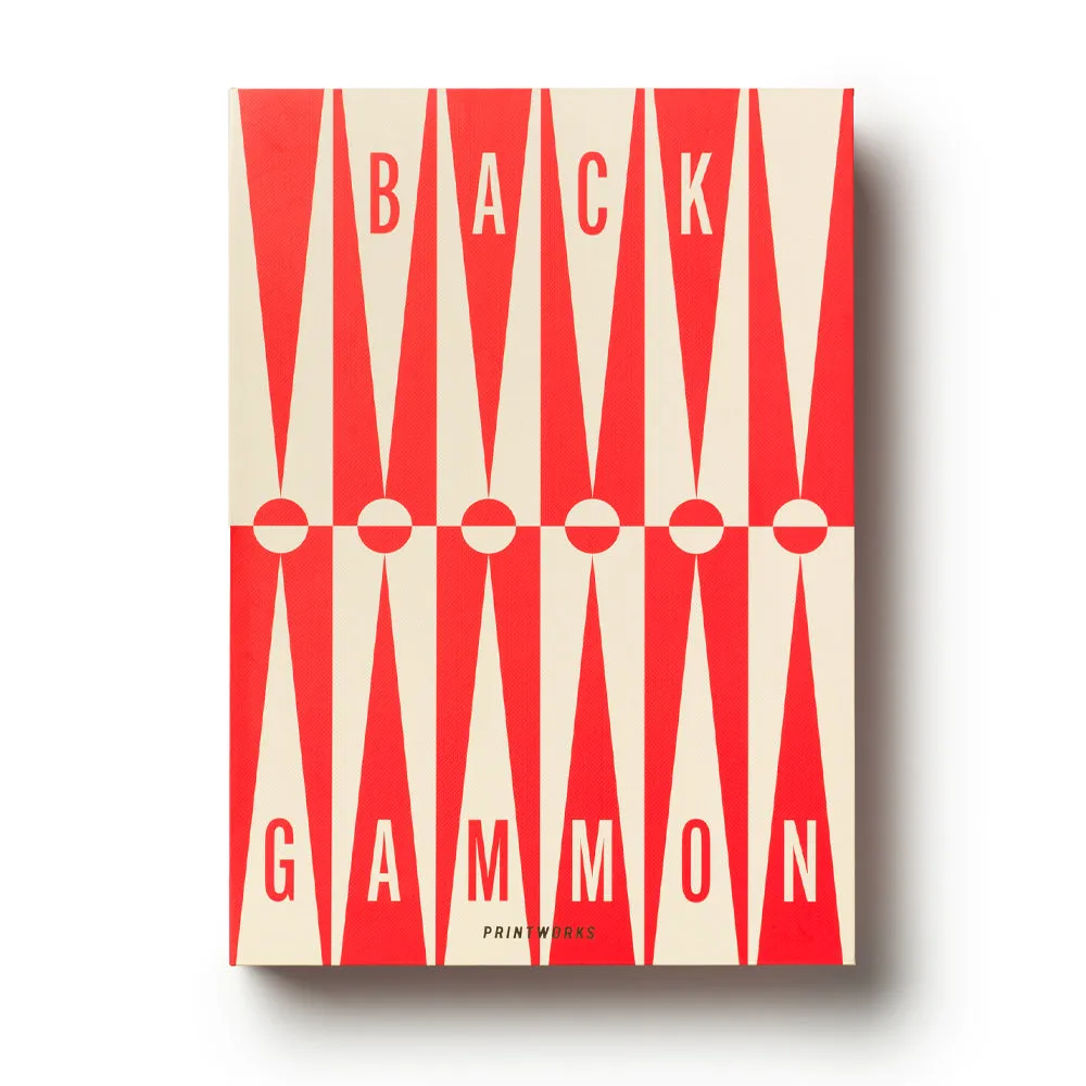 Printworks Classic Art of Backgammon-Red Cream - Bring timeless strategy and modern design together with the Art of Backgammon. This beautifully crafted set features an eclectic aesthetic with expressive patterns, bold red and cream tones, and striking typography that make it as much a decorative piece as it is a game.