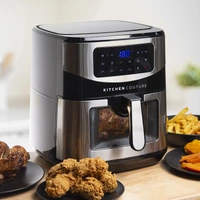 Kitchen Couture 12 Litre Clear View Digital Air Fryer – Cook Smarter, Live Healthier. Experience the joy of guilt-free indulgence with the Kitchen Couture 12 Litre Clear View Digital Air Fryer. This innovative appliance takes the hassle out of healthy cooking, delivering perfectly crispy, golden results with little to no oil. And here’s the showstopper: The built-in viewing window lets you watch the magic happen in real-time. No more guessing when your fries are done or opening the fryer to check on your chicken—just effortless cooking with a crystal-clear view. Features: Watch Your Cooking Transform: The built-in viewing window keeps you connected to the process, letting you check on your meals without interrupting the heat Healthier Meals Made Easy: Advanced air circulation technology gives you all the crunch, none of the grease Faster, Smarter Cooking: A rapid 3-minute preheat time, and nine one-touch presets take the stress out of meal prep Family-Size Capacity: The spacious 12-litre design means there’s always room for seconds or thirds Total Control at Your Fingertips: Digital temperature settings (up to 200 Degrees Celsius) and a timer (up to 60 minutes) put precision in your hands Mess-Free Cleanup: The removable oil-draining rack keeps your meals crisp and cleanup quick Peace of Mind: Safety is built-in with automatic shut-off and overheat protection, so you can cook with confidence Specifications: Brand: Kitchen Couture Type: Air Fryer Size: 12 litres Colour: Black, Silver Number of Presets: 9 Presets: Cake, Steak, Vegetables, Chicken, Drumsticks, Fish, Fries, Shrimp, Preheat) Power: 1800W Voltage: 220-240V / 50Hz Product Dimensions: 33cm (w) x 38.5cm (l) x 35cm (h) Product Weight: 5.5kg Package Contents: 1 x Air Fryer 1 x User Manual