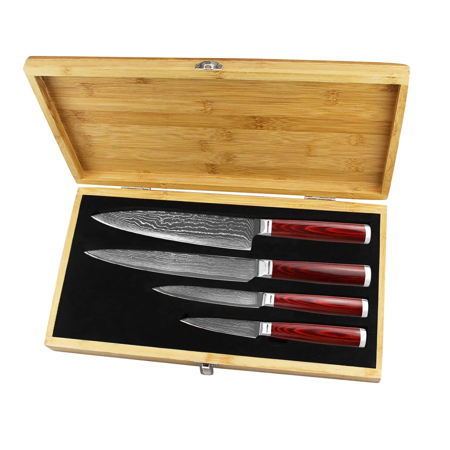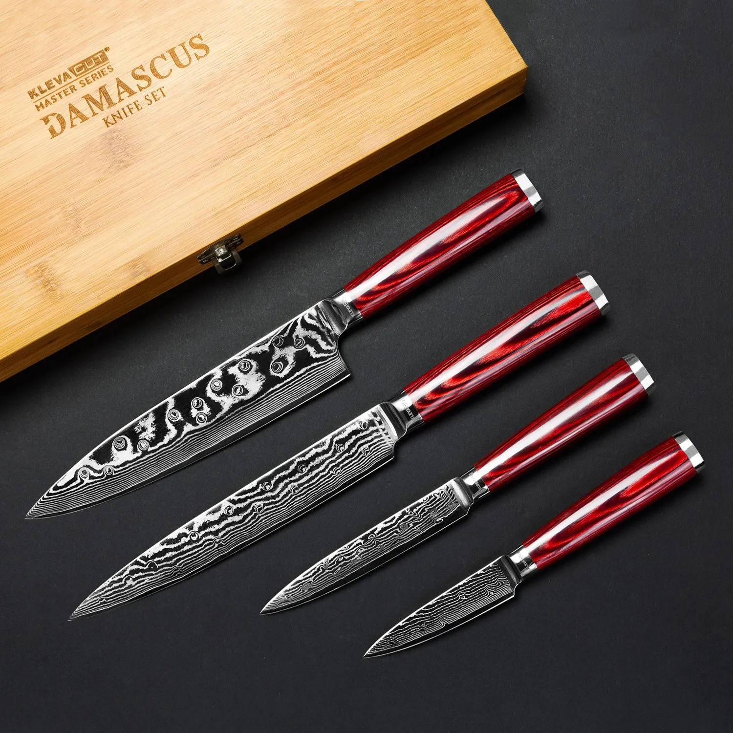Kleva Professional 67 Layer Damascus Steel 4pc Chef Knife Set Beautiful Bamboo Case KCMSDK067
