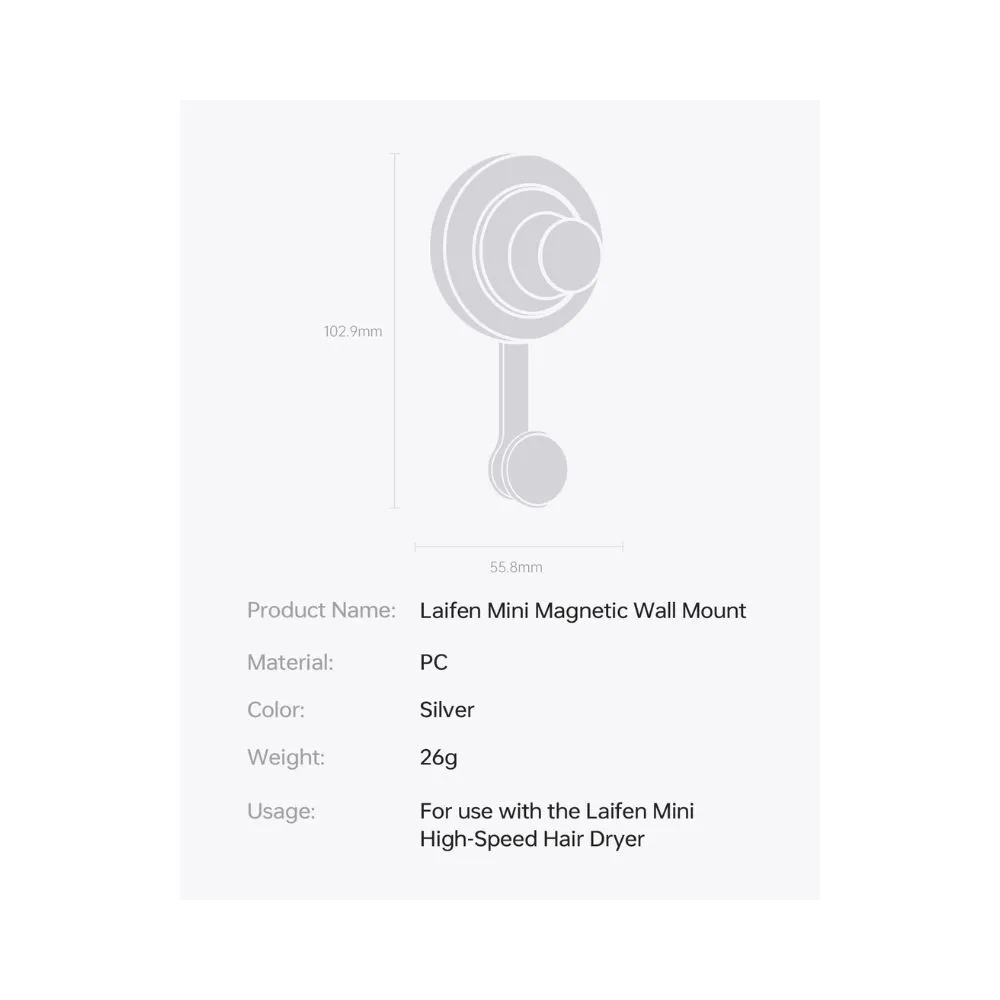 Laifen Magnetic Wall Mount Bracket for Hair Dryer – Silver