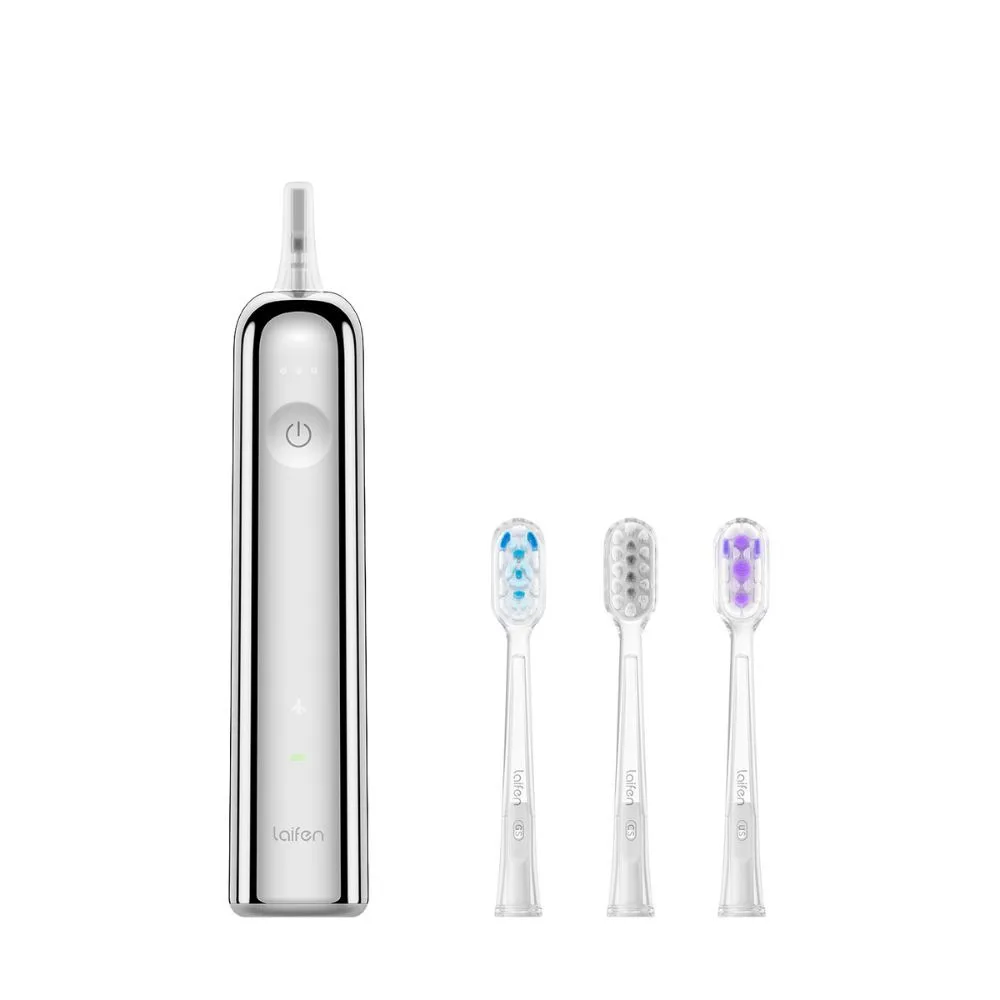 Elevate your oral care with the Laifen Wave Electric Toothbrush in polished silver stainless steel. Featuring 60° oscillations and up to 66,000 vibrations per minute, it delivers a deep, effective clean. Includes three premium brush heads, a Type-C charging cable, and app-controlled brushing for a personalized experience. Its seamless design ensures effortless hygiene and durability.