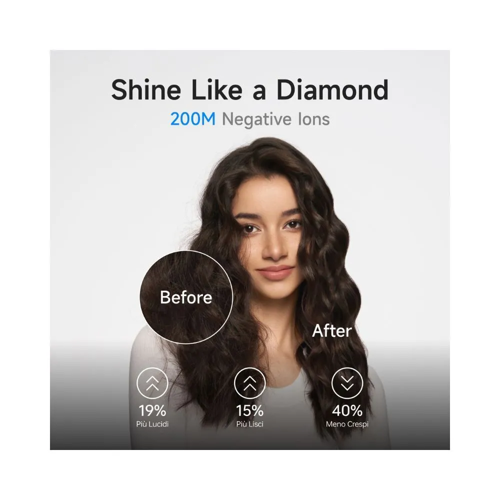 • Frizz-Free Finish: 200 million negative ions for smooth, shiny hair