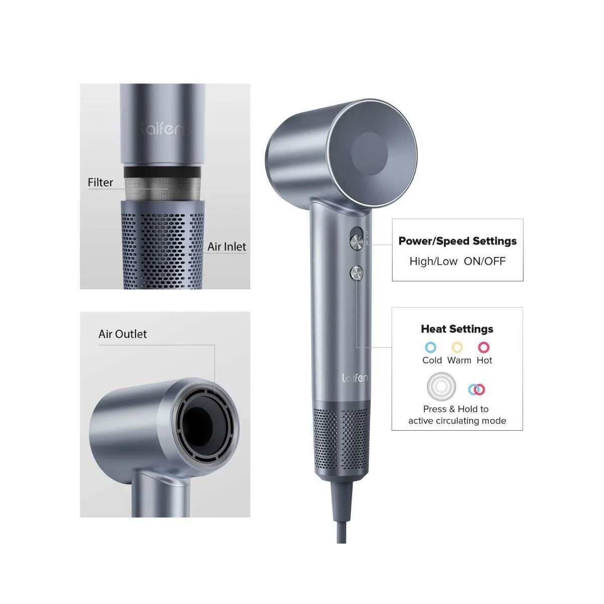 • Works seamlessly with Laifen Swift attachments and accessories