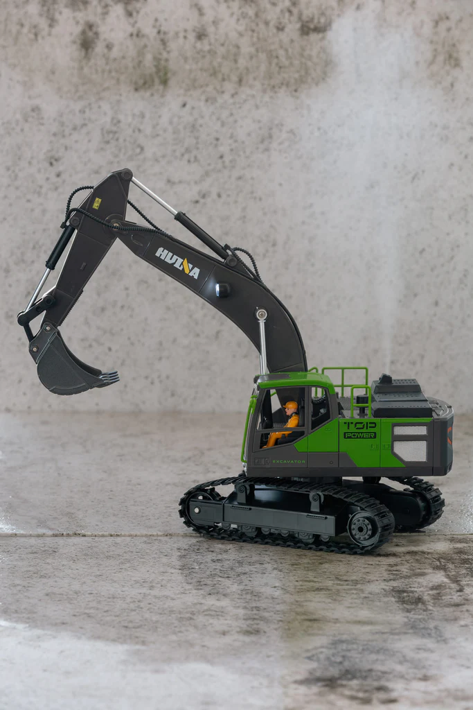 • 1:18 scale remote-controlled excavator