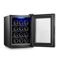 Enjoy perfectly chilled wine every time with the Lenoxx 12-Bottle Wine Fridge. Featuring a quiet 65W thermoelectric cooling system, it keeps your collection at the ideal temperature with easy-to-use touch controls adjustable from 10°C. The sleek black design, soft LED lighting, and UV-protected tempered glass door beautifully showcase your bottles while protecting them from harmful light. Compact yet spacious, it holds up to 12 bottles on three chrome-plated racks, perfect for any kitchen, bar, or entertainment area.