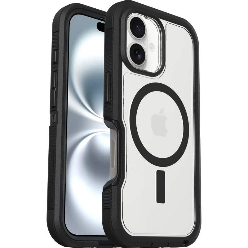 For legendary Defender Series protection in a sleek, see-through package, get Defender Series XT for MagSafe. Built to 7X military standard drop defenses, it survived 182 drop tests before we released it. It features a thinner, dual-layer design with a pressure-fitted frame that keeps your device securely in place — and a secure grip. Built-in magnets snap to MagSafe chargers and accessories, and integrated anchors give you extra ways to carry your case. Plus, this MagSafe case has raised edges for added camera and screen defense. *Holster not included
