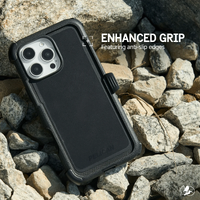 Strength, resistance, impact— The Pelican Voyager MagSafe Phone Case for the iPhone 16 Pro Max features dual-layer impact protection that keeps your phone safe from drops while a non-slip edge design enhances your grip. Carry your phone with the phone holster and prop up your phone with the integrated phone stand. The brand trusted by professionals since 1976, protects your phone with 18-foot drop protection, while strong built-in magnets allow for easy MagSafe charging.