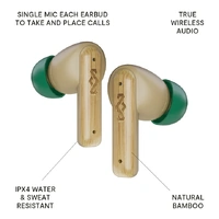 Meet House of Marley's Little Bird True Wireless Earbuds. Crafted from bamboo and recycled plastics, these eco-friendly earbuds offer 6 hours of playtime, and up to 24 hours of listening with 3 additional charges. Intuitive touch controls make music management swift and simple, and the built-in microphone ensures clear calls. Enhance your audio experience with movie and gaming modes and enjoy quick charging via USB-C. The Little Bird Earbuds bring conscious craftsmanship and superior sound together with a natural aesthetic that speaks for itself.