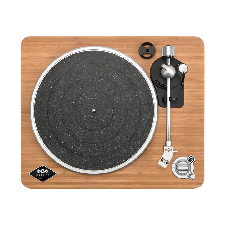 The Stir It Up Wireless turntable provides a sleek design using solid bamboo, REGRIND™ silicone, REWIND™ fabric, recycled plastic, and recyclable aluminium. Enjoy a classic sound system that wirelessly connects to any Bluetooth® speaker and offers a built-in switch pre-amp allowing seamless compatibility with your Marley speakers or in-home receivers. The Stir It Up Wireless includes a RCA output, and a 3.5mm headphone jack.