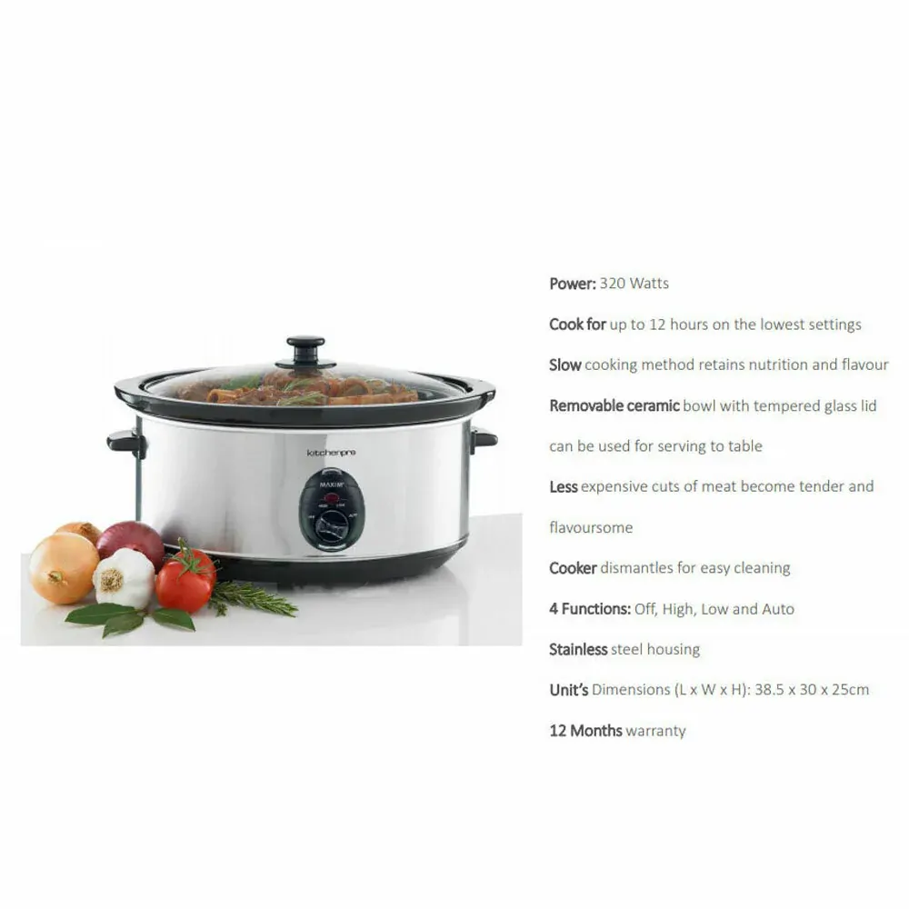 Make delicious meals for your family and friends using this Maxim Kitchen Pro 6.0L Stainless Steel Slow Cooker!