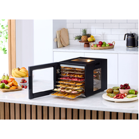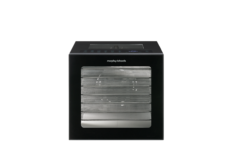 This high-quality, sturdy metal dehydrator features 8 stainless steel shelves that gently remove moisture from fruits, vegetables, meats, fish, herbs, and spices using controlled low-temperature heat. Choose from 10 preset cooking programs or customise the settings to your preference, sealing in natural flavours and nutrients for highly nutritious, vitamin-rich snacks. With a transparent door and windows, an inner lamp, a 48-hour timer, and adjustable temperature settings, the Morphy Richards dehydrator is the perfect addition to your kitchen for healthy, delicious snacking!