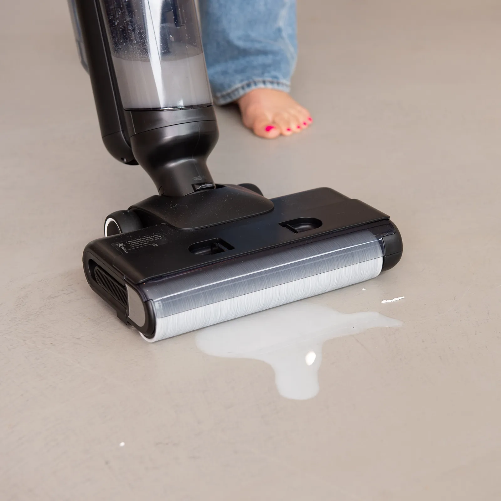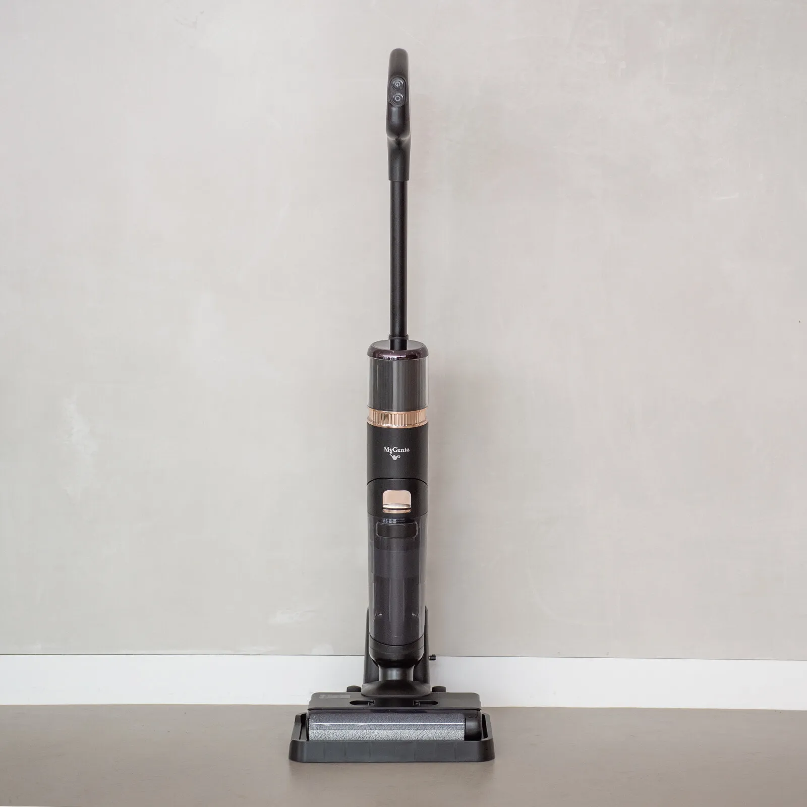 Treat yourself to effortless cleaning with the MyGenie Zeus Cordless Wet and Dry Hard Floor Cleaner. Combining a user-friendly experience with advanced features, this cleaner is sure to assist you in achieving spotless and sanitised floors with minimal effort. The full-colour LCD display allows you to effortlessly read information and control your cleaner, helping you ensure the right settings are selected for amazing results. Suck up dry debris and messes with ease with the dry vacuum mode, even if theyre in a tight space or against the wall thanks to the slim design of this cleaner. Built with a powerful 230W brushless motor, this cleaner delivers a powerful suction while retaining a long motor life, while the HEPA filter helps catch fine dust and allergens. Designed with convenience in mind, this hard floor cleaner features an amazing self-cleaning function that automatically cleans the brush and internal tubes, allowing you to focus only on your floors while the spare roller allows you to keep cleaning without interruption. With a high recovery rate of over 90% of water and an onboard sterilisation process for the water, your floors require minimal drying afterwards while being effectively cleaned. Providing real-time updates, this cleaner includes voice prompts that help you obtain perfect results. Features: Effortless Wet and Dry Cleaning: Easily tackle spills and debris with a versatile design that handles wet and dry messes for consistently sanitised floors Intuitive Full-Colour LCD Display: Stay informed at a glance, adjusting settings and modes to achieve optimal results without guesswork Powerful and Durable Motor: Enjoy a 230W brushless motor that delivers exceptional suction while ensuring a long, reliable lifespan Self-Cleaning Convenience: The automatic self-cleaning function and spare roller let you focus on your floors, not your maintenance routine High Water Recovery and Sterilisation: Achieve minimal drying time and improved hygiene with over 90% water recovery and on-board sterilisation technology Voice Prompts and Easy Charging: Real-time voice guidance keeps you on track, while the two-in-one clean and charge base ensures your cleaner is always ready to go Specifications: Power: 230W Motor Design: Brushless Colours: Bullet Grey Suction Power (max): 12Kpa Suction power (min): 5Kpa Clean Water Capacity: 650ml Dirty Water Capacity: 550ml Filter: HEPA Battery Capacity: 3000mAh Battery Voltage: 29.6V Recharge: Charger included Run Time (Max): 40 Mins Run Time (Min): 25 Mins Dry Vacuum Mode: Yes Voice Prompts: Yes Water Sterilization on board: Yes 99.99% Bacteria elimination Spare Roller Head included: Yes Charger: Yes Water recovery Rate: >90% Digital LCD Screen: Yes / Full colour Self-Cleaning Function: Yes Clean and Charge Base: Yes Slim Wall Clearance: Yes Product Dimensions: 110cm x 27.5cm x 22cm Package Contents: 1 x MyGenie Zeus Cordless Wet and Dry Hard Floor Cleaner 1 x HEPA Filter 1 x Clean and Charge Base 1 x Charging Adapter 1 x User Manual