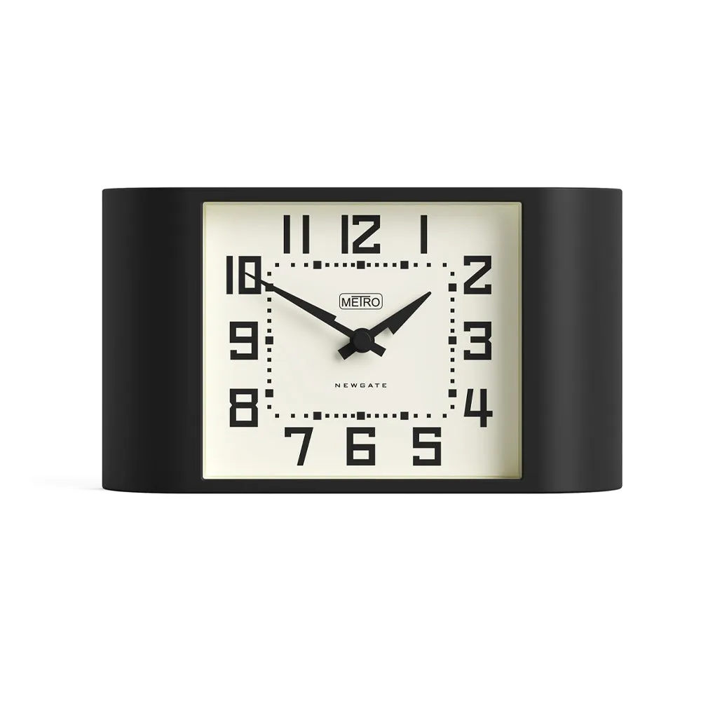 Newgate Mini Metro Mantel Clock-Black - The Newgate Mini Metro mantel clock offers a refined, compact interpretation of the iconic Metro design. Blending retro character with a clean, contemporary look, it features a softly curved rectangular case, bold numerals, and a pared-back dial. Ideal for shelves, bedside tables, or desks, this smaller mantel clock delivers timeless style in a practical, space-saving form.