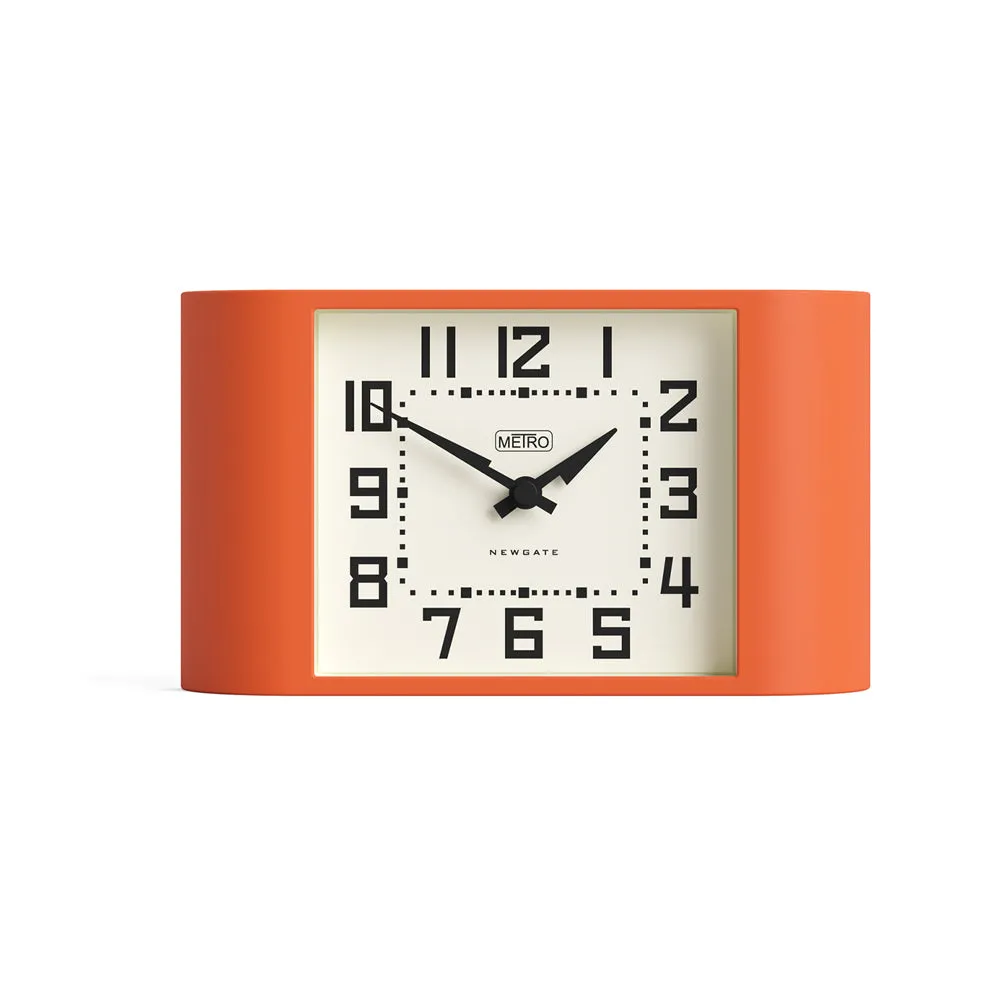 Newgate Mini Metro Mantel Clock -Pumpkin Orange - The Newgate Mini Metro mantel clock offers a refined, compact interpretation of the iconic Metro design. Blending retro character with a clean, contemporary look, it features a softly curved rectangular case, bold numerals, and a pared-back dial. Ideal for shelves, bedside tables, or desks, this smaller mantel clock delivers timeless style in a practical, space-saving form.