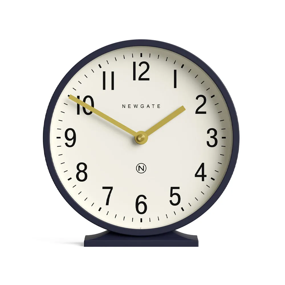 Newgate Q Mantel-Petrol Blue - This modern mantel clock showcases a refined minimalist aesthetic, featuring a bold circular case balanced on a subtle, streamlined base. The classic clock face is designed for effortless readability, with clear numerals and slender hands, while metallic detailing introduces an elegant finishing touch.