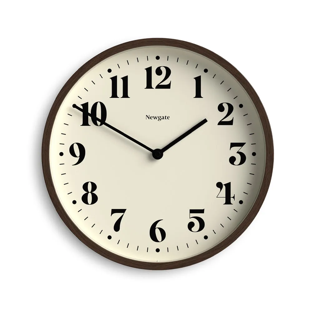 Newgate Number Four Theatre Wall Clock-Faux Dark Wood - The Number Four Theatre wall clock combines classic style with contemporary materials. It features a durable acrylic case with a realistic medium faux wood finish, paired with a clean, minimalist dial protected by a clear glass lens. Bold numerals and slim metal hands ensure excellent readability, making it both a practical and stylish accent for home or office interiors.