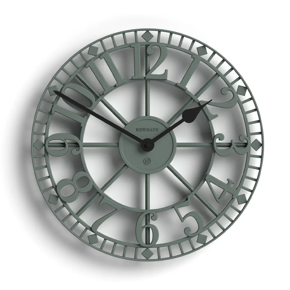 Newgate Warehouse Wall Clock-Asparagus Green - The Newgate Warehouse wall clock is a striking industrial-style timepiece featuring an open-frame skeleton design. Its bold Arabic numerals and refined metal hands are showcased within the exposed structure, creating a distinctive architectural look. Designed to make a statement, this clock complements modern, loft, and vintage-inspired interiors alike. Blending timeless style with everyday functionality, it adds character to any space while remaining easy to read at a glance.